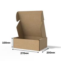 Короб самосборный с ушками размером 270*200*100 мм выполнен из качественного гофрокартона бурого цвета, что обеспечивает его прочность и надежность. Эта картонная упаковка идеально подходит для хранения и транспортировки самых различных товаров. Удобная форма и конструкция облегчает процесс сборки, делая её незаменимой для переездов или отправок.