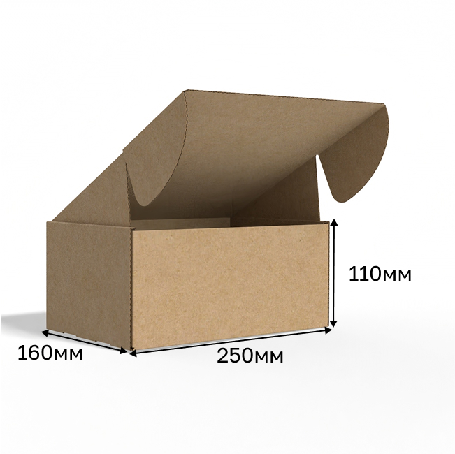 Короб самосборный с ушками размером 250*160*110 мм, выполненный из прочного гофрокартона, идеально подходит для упаковки и хранения различных товаров. Эта картонная коробка станет надежным решением как для доставки, так и для переезда. Удобные ушки позволяют легко закрывать коробку, обеспечивая безопасное транспортирование ваших изделий.